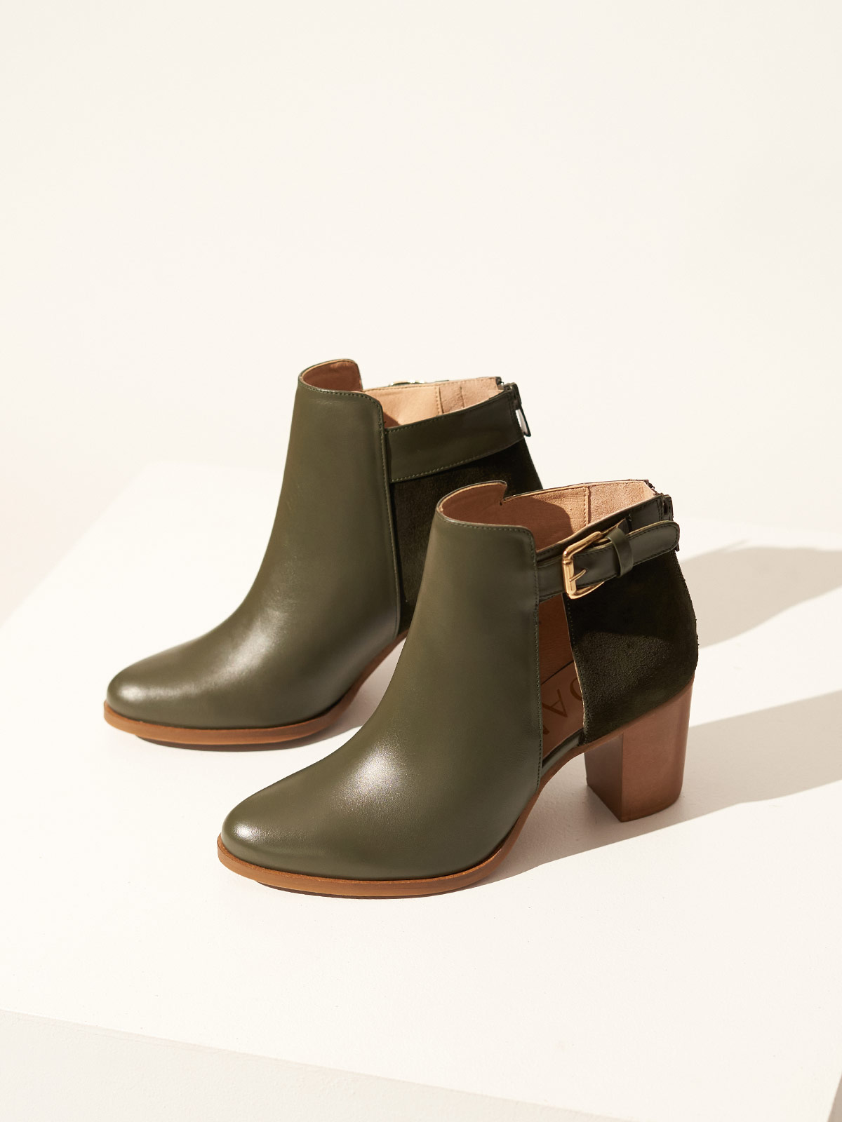 These ankle boots have been made from suede and supple leather and are decorated with an elegant round buckle. They’re set on manageable 65mm block heels and have almond toes.